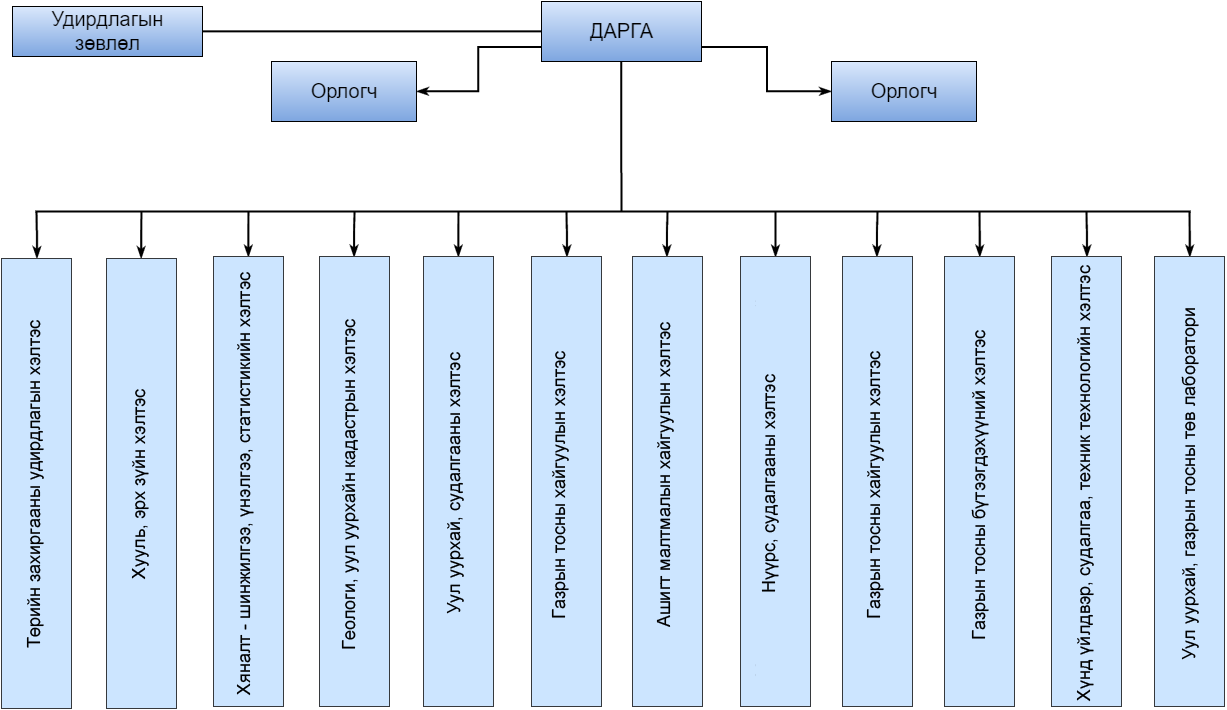 Төрийн захиргааны удирдлагын манлайлал, хүний нөөцийн удирдлагаар хангах, байгууллагын хөрөнгө санхүүгийн эх үүсвэрийг оновчтой удирдах, тайлагнах, газрын тостой холбоотой үйл ажиллагааны орлогыг тооцох, төсөвт төвлөрүүлэх, гэрээлэгчдийн төлөвлөгөө төсөв, өртөг нөхөгдөх зардлыг хянах, ашигт малтмалын хайгуулын ажлын зардлын доод хэмжээг баталгаажуулах;