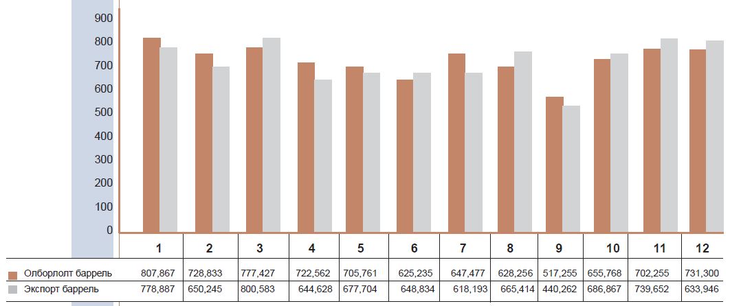 Газрын тосны олборлолт, экспорт: