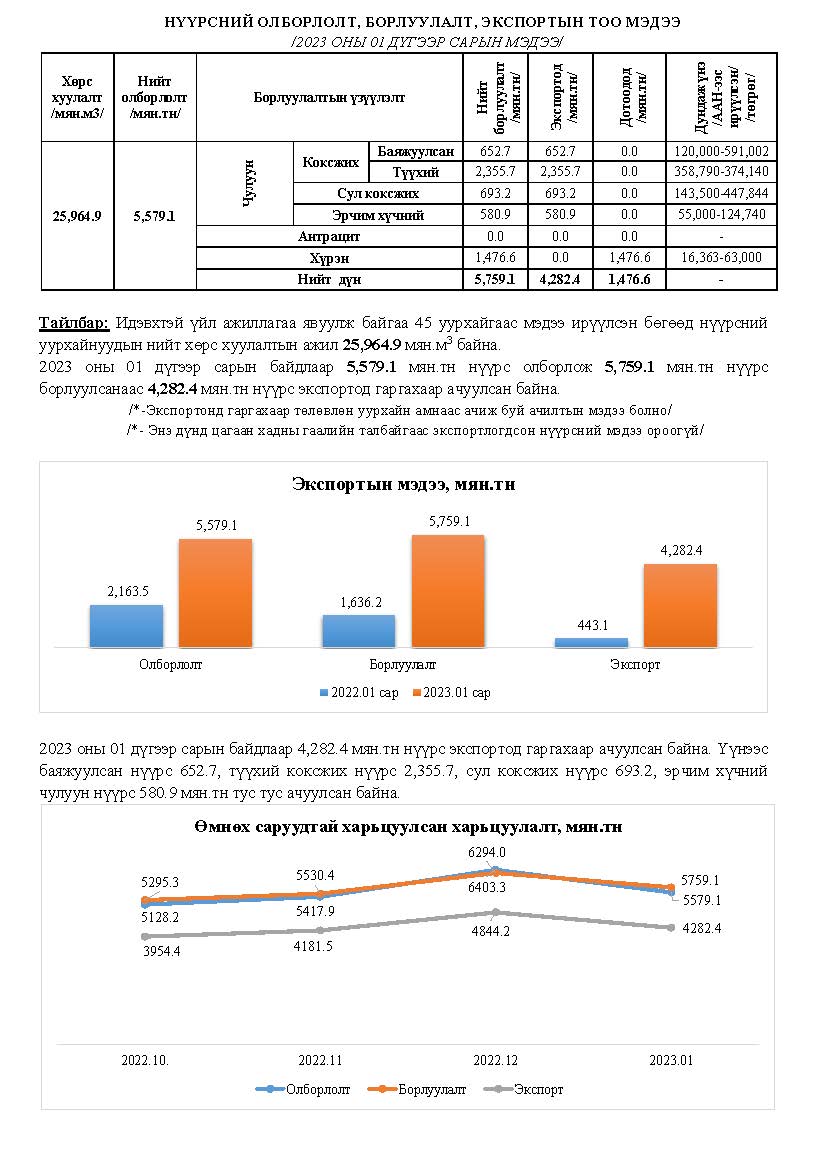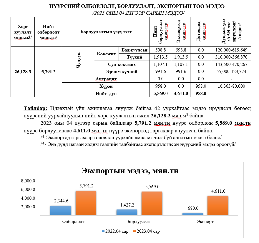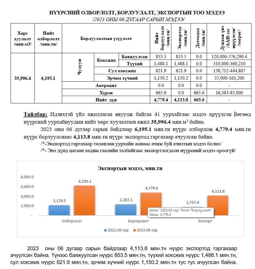 Нүүрсний салбар монгол улсын эдийн засагт татах