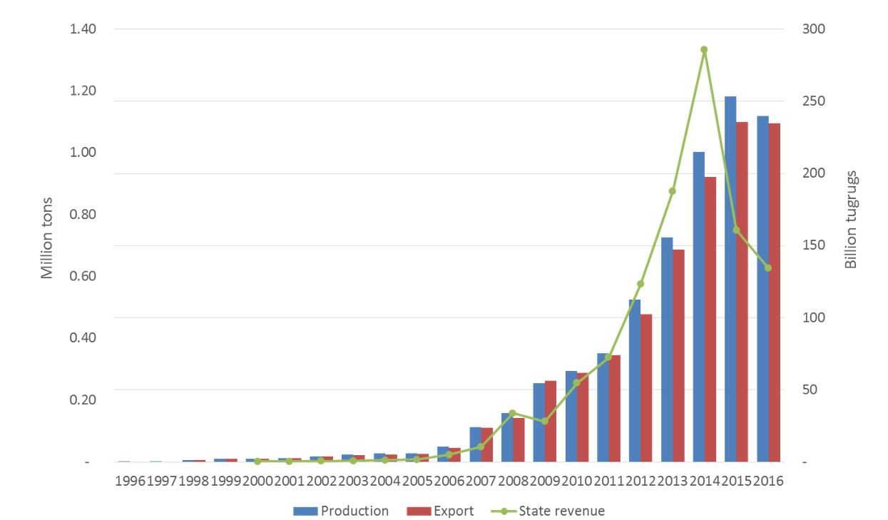 Монгол Улсын хэмжээнд 1998-2025 оны хооронд нийт 11.75 сая тонн газрын тос олборлосон ба 11.267 сая.тонн газрын тос БНХАУ-руу экспортлож, борлуулалтын орлогоос 2.79 их наяд төгрөгийг Улсын төсөвт төвлөрүүлээд байна. 2025 онд нийт 4.24 сая баррель буюу 579 мянган тонн газрын тос олборлон экспортлох төлөвлөгөөтэй ба 2025.06.11-ний өдрийн байдлаар 1.7 сая баррель буюу 231.3 мянган тонн газрын тос олборлож, экспортолсон. Төлөвлөгөөний гүйцэтгэл 40.12 хувьтай байна.